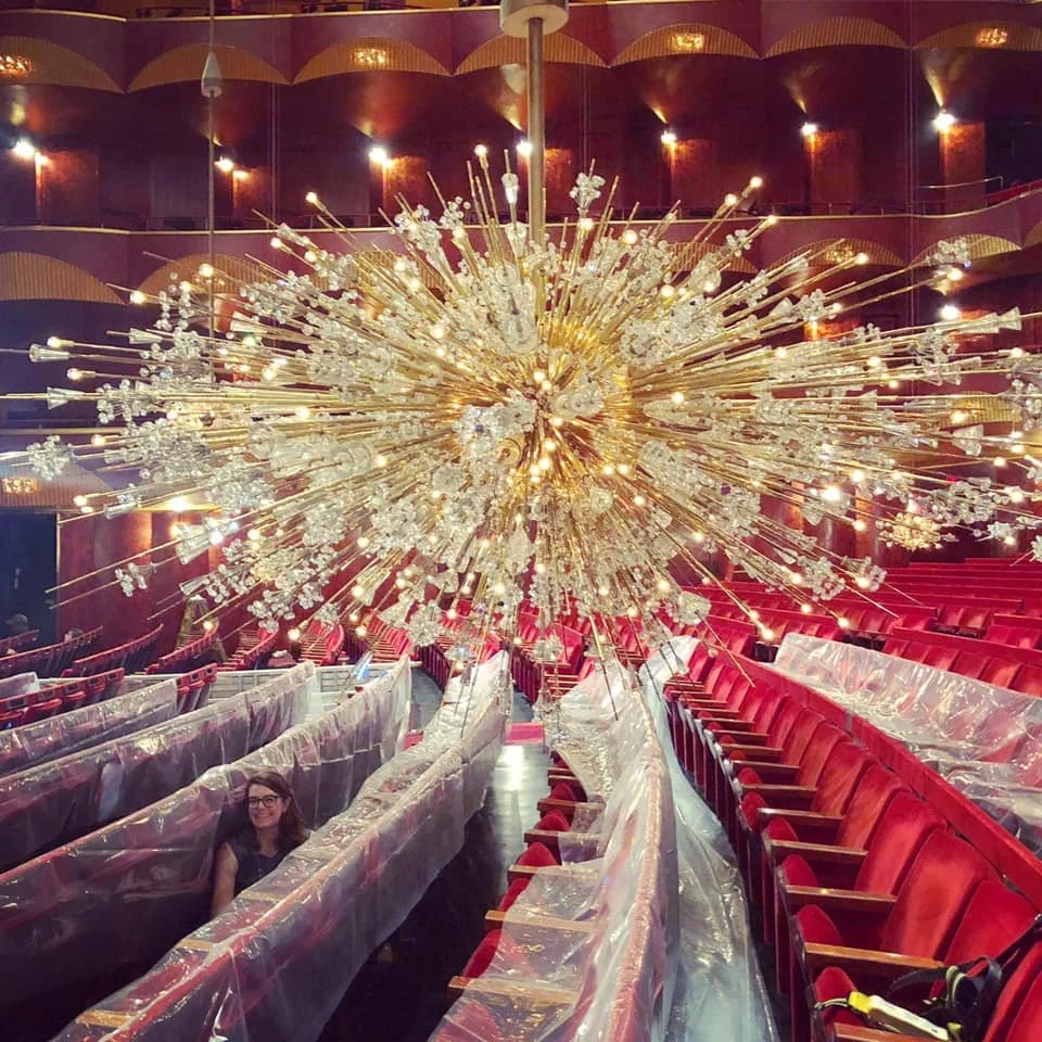 Under the Met Opera’s chandeliers at their annual cleaning for a piece I produced during my tenure managing their organic social media.